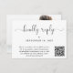Elegant wedding RSVP card that features "kindly reply" in a chic calligraphy script. Input your wedding website address to create a QR code your guests can scan to RSVP online. The reverse side features your photo overlayed with your first names and wedding date joined together with by heart.