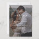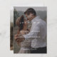 A simple and chic photo wedding invitation featuring elegant script calligraphy details and classic text overlay on a portrait vertical photo on the front. The back has a full bleed photo. Click the edit button to customise this design.