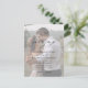 A simple and chic photo wedding invitation featuring elegant script calligraphy details and classic text overlay on a portrait vertical photo on the front. Click the edit button to customise this design.