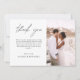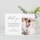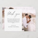 Express your heartfelt gratitude in timeless style with this Elegant Script Photo Wedding Thank You Card. Featuring refined calligraphy, a full photo layout, and minimalistic design elements, this card is the perfect way to thank your guests while showcasing a cherished moment from your big day. Ideal for modern, romantic, or classic wedding themes, it’s fully customisable with your message and photo.