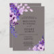 Elegant Script Pink Flower Wedding Invitation. Elegant Script Purple Pink Flower Wedding Invitation. This elegant wedding invitation exudes timeless appreciation, featuring delicate purple and pink flowers beautifully arranged at the top left and bottom right of invite. The classic script calligraphy adds a touch of refinement, making this invitation perfect for a formal wedding occasion. Set against a rich grey-purple background with crisp white text, this design is both modern and graceful, ensuring your event stands out with style and elegance.