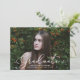 Elegant graduation announcements featuring the graduate's horizontal photo with "Graduate" in white script lettering. Personalise the front of the photo graduation announcement by adding the graduate's name, school name, and graduation year. The announcement reverses to display a purple and white hand-drawn stripe pattern.