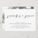 For couples who want a simple yet elegant wedding invitation design yet modern elements with QR code for the RSVP and wedding website and their engagement photo on the back of the card. Elke Clarke © The design features the bride and groom names in an elegant script font. Shown with a black and white photo but add your own engagement photo in either colour or black and white. Customise it to suit your wedding colours for the text and background. Add any other graphics, photo or monogram to you personalise this template.