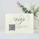 Timeless and elegant wedding RSVP response card featuring a beautiful calligraphy script and a convenient QR code for easy online replies. Designed with soft neutral tones and a minimalist layout, this card is perfect for classic, romantic, or modern weddings. A stylish way to simplify guest responses while keeping your wedding stationery suite cohesive and refined. Fully customizable to match your special day.
