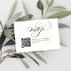Sophisticated and timeless wedding RSVP response card featuring elegant calligraphy script and a modern QR code for easy online replies. Designed with soft neutral tones and subtle floral accents, this minimalist layout is perfect for classic, romantic, or modern weddings. A beautiful and convenient way for guests to respond quickly while keeping your stationery suite cohesive and stylish.