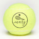 Personalised tennis balls with a unique elegant calligraphy cursive script font name and simple tennis racket and tennis ball monogram logo inside a circle border. Use the Design Tool Template Editor to change the border colour, font colour, font selection, and design. Add team name or special occasion text on the back for a fully personalised keepsake.