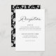 A minimalist elegant script design in a black and white colour theme. Great to use for a wedding or special event reception. The back side has an optional black and white romantic black and white floral pattern.