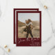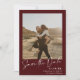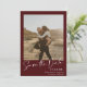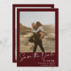 Elegant script calligraphy simple 2 photos muted red burgundy and white wedding save the date.