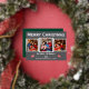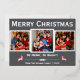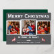 Elegant Script Reindeer Christmas Family 3 Photo Foil Holiday Card
