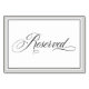 A simple and elegant Reserved table card for tables at your reception or banquet that you wish to reserve for special seating. A silver grey border surrounds the simple white card with elegant calligraphy spelling out the word "Reserved"