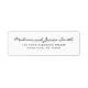 Create your own Wedding Invitations Return Address labels with this Stylish Elegant Chic Minimalist Return Address template. The Return Address simple label in black and white typo features couple names in classic elegant sophisticated script and serif font, and your own return address. This clean and minimalist return address label design is perfect for rspv, wedding invitations, bridal shower, save the date and all your special occasions.