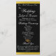 This romantic design features an elegant black background with ribbon borders, wedding ceremony details & thank you on the front with wedding party members on the back. Available in several colours for your wedding theme. (Ribbon is simulated in the artwork). Designed to coordinate with the "Two Shall Become One - Silver & Gold" Wedding Collection. To change details, click «Personalise». To move the text or change the text size, font, or colour click «Click to customise further»
