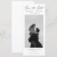 This Save The Date is a soft and romantic way to share your news. The elegant script and black-and-white photo create a clean, modern, and timeless look. With its simple layout and minimalist style, it highlights your love in the most natural and genuine way. A beautiful choice for couples who want a classic and heartfelt announcement.