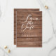 This rustic save the date card features an elegant script save the date above your details set in elegant typography on a rustic wood panels background. Designed by Thisisnotme©