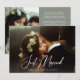 These elegant wedding elopement or marriage announcement cards feature modern white script classic typography that says "just married" on the front as an overlay on your photo. The back has a sage green background with simple white text and another photo, along with plenty of room to turn this announcement into a combo invitation for your Happily Ever After party, or post-wedding reception or celebration party. There is a scannable QR code so guests can RSVP to your event, or even view some photos from your elopement.