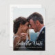 This chic save the date photo postcard features elegant script and modern typography. You can easily customise this save the date card with your upcoming wedding details and your engagement photo. The photo phades into a chic black colour. If you need help or matching items, please contact us through our store! We're happy to help you make your wedding the most beautiful day.