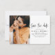 Wedding Save the Date Cards that have a photo on the front and back. The Save the Date cards contain a modern hand lettered cursive script typography that are elegant, simple and modern to use after you wedding day celebration.