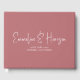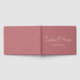 Create a simple unique modern typographic dusty rose wedding guest book that includes your first names in a pretty white handwritten script font, contrasted with your wedding date, wedding location city and state. Simple elegance in a modern minimalist style.
