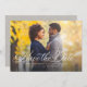 Share the news of your engagement and upcoming marriage with this one-photo horizontal save the date card featuring an elegant type treatment in white that sits at the bottom of a horizontal photo. The back is a neutral shade with a subtle grid pattern. The colour can be adjusted by clicking "Customise."