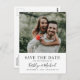 Elegant Script Photo Modern Minimalist Wedding Save The Date Postcard. Let your family, friends and colleagues know that you have set a date for your wedding celebration with this elegant, stylish and modern wedding save the date invitation postcard. All the texts are pre-arranged for you to personalise easily and quickly with your own details.