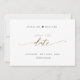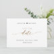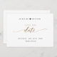 Announce your wedding date with this beautiful wedding save the date card. Modern hand written Script details in both front and back. Back with unique Save the Date stamp/monogram with couples names. Clean and simple style. White and black design with a touch of gold with Script and block typography in golden hue on phrase "Save the Date". Area for wedding website, more information or/and message for your guests (i.e. "Can't wait to see you there!"). Coordinating stamp / monogram envelope seal sticker also available.