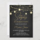 Modern design with strings of glowing lights over chalkboard background. Surprise Retirement Party invitation for men, women.