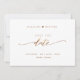 Announce your wedding date with this beautiful wedding save the date card. Modern hand written Script details in bronze terracotta faux foil in the front. Back with unique Save the Date stamp/monogram with couples names in white over an earthy terracotta background . Clean and simple style. rust terracotta and white design. Area for wedding website, more information or/and message for your guests (i.e. "Can't wait to see you there!").