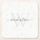 Elegant Script Terrazzo Stone Ivory Grey Monogram Square Paper Coaster