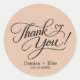A romantic, personalised “Thank You!” sticker featuring elegant flowing calligraphy with delicate swashes and a subtle heart accent. Customised with names and date, this timeless black-on-white design is perfect for weddings, engagements, and special celebrations. A graceful finishing touch for your unforgettable day.