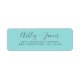 Chic, modern and simple wedding return address label with your names in off-black elegant handwritten script calligraphy on a turquoise blue background. Simply add your names and address. Exclusively designed for you by Happy Dolphin Studio. If you need any help or matching products please contact us at happydolphinstudio@outlook.com. We're happy to help you make your wedding the most beautiful day!