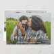 Modern Wedding Photo Save the Date Card featuring a simple design with elegant script typography over your favourite horizontal picture. The back has two square photos along with your personal message in black and white.