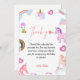 whimsical script unicorn theme birthday baby girl birthday party thank you card