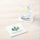Elegant Script Watercolor Christmas Trees Square Paper Coaster