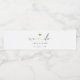 Custom-designed wedding water bottle labels featuring "we do" in modern hand calligraphy with gold glitter heart. Personalise with couple/bride and groom's names and wedding date.