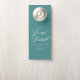 An elegant wedding "do not disturb" sign featuring a teal green solid background with a mix of script and modern sans serif font. Personalise for your wedding.