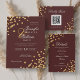 Elegant Script Wedding Gold Confetti QR Burgundy Invitation