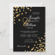 Elegant Script Wedding Gold Confetti QR RSVP Black Invitation