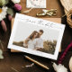 An elegant script photo save the date magnet with horizontal photo and minimal text. Click the personalise button to customise this design.