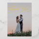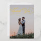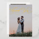 Minimalistic and elegant wedding thank you card featuring typography script text with swashes and dots. The text says "thank you" on top of your vertical photo. You can add a photo on the front and back along with your message.