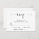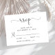 Elegant wedding RSVP card featuring "rsvp" in a chic calligraphy script with swashes, simple modern typography and your names joined together by a heart on the back.