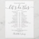 This stylish grey and white wedding schedule timeline can be personalised with your wedding details in chic grey lettering. Designed by Thisisnotme©