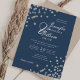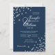 Elegant Script Wedding Silver Confetti QR Navy Invitation