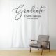 Elegant white backdrop and photo wall prop for your graduation party featuring "Graduate" in a chic modern script and the graduate's name and class year in simple modern typography.