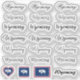 Countour Stickers: Elegant script Name set - Wyoming & Wyoming Flag (States of America) - custom name in 6 x 3 different handwriting personal fonts. Cool black handwritten stickers allows you to mark your items, put name on with personal touch / name can be costumised