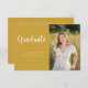 This graduation invitation features an elegant yellow gold-and-white theme with a photo. The photo is for placement purposes only and can be replaced with any photo of your choice. Customise text on the front and back of the card to create a truly personalised graduation party invitation. #graduationparty #classof #highschoolgraduation