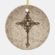 Elegant Scroll Christian Cross w/Swirl Background Ceramic Tree Decoration