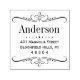 Stylish self-inking stamper design features an elegant scroll frame with custom surname and return address text that can be personalised.