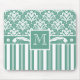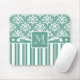 Elegant Sea Green Damask with Your Monogram Mouse Mat
