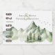 Watercolor landscape painting of trees, flying birds and montains in the background. Calm and serene nature illustration with pine trees and silhuettes of flying birds. Make sure your guest get all the information of your specila day with this bottle label sticker.