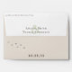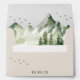 Watercolor landscape painting of trees, flying birds and montains decorating the inside of the envelope. Tranquil green colours of a serene nature scenery. Add bride and groom name and return address. On front write guest name and address.
